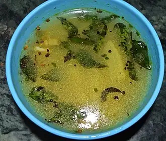 Kanji or Ambila is a rice water based dish traditionally prepared in Indian states like Orissa, Andhra Pradesh, Tamil Nadu and Kerala. Depending on how it is prepared, it is eaten with soup or curry. It is one of the Chappan Bhog (56 food items also known as Mahaprasad) offered to the Hindu god Jagannath of Puri as part of the last meal of the day (known as Badaw Singhara Bhogaw).[1] During the Odia festival of Kanji Anla Osha,[2][3] kanji is offered to the Hindu goddess Sathi in Odisha.