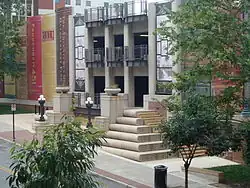 Built in 2004, The Community Bookshelf (also known as the Library District Parking Garage) is a striking feature of Kansas City's downtown. It runs along the south wall of the Central Library's parking garage on 10th Street between Wyandotte Street and Baltimore Avenue. The concept of turning the parking garage into a bookshelf was part of an effort on behalf of the community to bring character to the needed structure.[4]