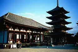 ![]() Motoshige often performed at Kōfuku Temple in Nara. | |||||