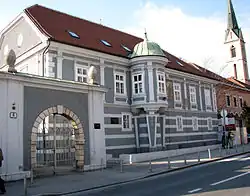 | 7 | Prepoštija Manor (or Provost's manor), built between 1543 and 1571.[12] Has undergone several renovations. The painted façade dates from the 17th century, while the 1756 black marble portal was made by the famous sculptor Francesco Robba.[13] | |