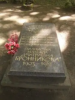 - ^ Пискарёвское мемориальное кладбище; Old USSR Biographical Encyclopedia biography ends: "Урна с прахом в колумбарии Крематория"