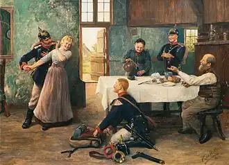 Back in Hamburg, he was a one-year volunteer with an infantry regiment; making drawings for use by his unit. This inspired him to continue creating works on military subjects for many years. The Kunstverein in Hamburg (Artists' Association) acquired several such works for raffles and lotteries.