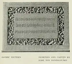 Rydingsvärd was an active contributor to many craft-focused periodicals, writing tutorials and publishing decorative designs intended to be copied by amateur woodcarvers. He provided a multi-part series, "Lessons in Woodcarving", in the Arts & Crafts magazine[26] (London, published by Hutchinson and Co.), as well as publishing in Art Amateur,[27][28] International Studio,[29] and The Craftsman.[30]