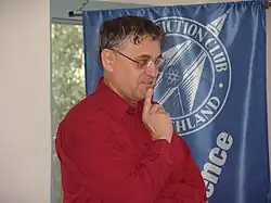 Karlheinz Steinmüller (born 4 November 1950) is a German physicist and science fiction author.[1] Together with his wife Angela Steinmüller he has written science fiction short stories and novels that depict human development on a cosmic scale, grounded in an analysis of social structures and mechanisms. Angela and Karlheinz Steinmüller were not only among the most widely read authors in the GDR, ranking at the top of a 1989 poll of most popular science fiction authors in the GDR,[2] but their works continue to be republished.