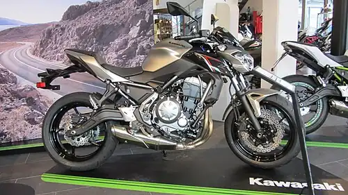The Z650 was presented in November 2016 at EICMA together with the Kawasaki Z900. It is named in reference to the four-cylinder motorcycle of the same name also built by Kawasaki in 1976[1] and was then introduced on the market in Europe at the beginning of 2017.[2] The Z650 was created as a cheaper model than the larger Z900, from which it takes the design and some aesthetic elements.
