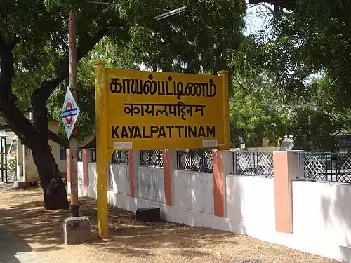 ![]() Kayalpattinam station board | |||||||||||||||||||||||||||||||||||||||||||||||||||||||||||||||||||||||||||||||||||||||||||||||||||||||||||||||||||||||||||||||||||||||