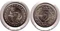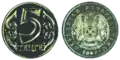 ₸5 | 17.27 mm | 2.18 g | 1.3 mm | 1997~2018 | 11 November 1998 | |||||||||