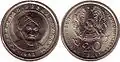 ₸20 | 18.27 mm | 2.9 g | 1.6 mm | Carbon steel and galvanic nickel | Grooved | Value | Year, Emblem of Kazakhstan | 2019~present | 26 April 2019 | Current | ||||
