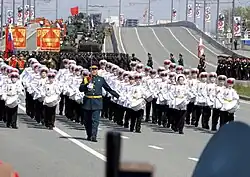 After the creation of the first nine Suvorov schools in the early 1940s, the State Defense Committee adopted a resolution of June 4, 1944 to organize an additional six schools, including Kazan. On June 20, 1944, the Commander of the Volga Military District issued a directive on the formation of the Kazan Suvorov Military School. The temporary formation point was in the Admiralty suburb of Kazan, on the territory of the Zhytomyr Military Infantry School. The academic building was completed on September 30, 1944, which would later hold four companies of 100 people each. The first bell rang on October 2, 1944, with the first set of boys representing 14 nationalities from 19 regions and 8 autonomous republics of the center of the country. In 1949, 5 years later, the school's first graduation parade was held, when its first graduating classes were presented diplomas for completing secondary education. In 1973, the school was awarded by the Military Council of the Volga Military District for its success in the military-patriotic education of its students with the prestigious Order of the Red Banner, in celebration of the 30th anniversary of the Suvorov Schools. The school has also repeatedly won the Honor Prize of the Ministry of Defence of the Russian Federation, and has received a certificate of merit by the Commander-in-Chief of the Russian Ground Forces.[2][3]