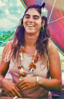 In the 1970s she settled on the island of Kauai.[3] In 1976, Keani Reiner and her crewmate Penny Rawlins were selected as the first two women to sail on Hokulea, a contemporary, traditionally designed, double hulled Polynesian sailing canoe, across the open ocean from Tahiti to Hawaii.[3][4][5] She sailed along with other crew members including Snake Ah Hee, Andy Espirito, Kawika Kapahulehua, Mel Kinney, Kainoa Lee, Kimo Lyman, Gordon Piʻianaiʻa, Leonard Puputauiki, Penny Rawlins, Nainoa Thompson, Makaʻala Yates and Dr. Ben Young.[6][7]