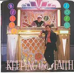 "Keeping the Faith" is a song by American singer-songwriter Billy Joel from his 1983 album An Innocent Man. The song serves both as its closing track and the final single released from the album. The cover for the single shows an image of Joel and the judge (character actor Richard Shull) in the "jukebox" courtroom from the video.
