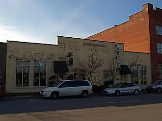The Kelly Brothers and Rowe Building is a historic warehouse in Huntsville, Alabama. Built in 1928, the façade is nearly free of ornamentation, except for a raised central parapet, with a plaque reading "Kelly Bros. & Rowe", and soldier course brick outlining the building and openings. Originally, the front featured two large warehouse doors, each with an entry door and a multi-pane window towards the center of the building. The warehouse doors have each been replaced with a twin-pane fixed window and transom, and the multi-pane windows have been replaced with a single pane and transom.[2]