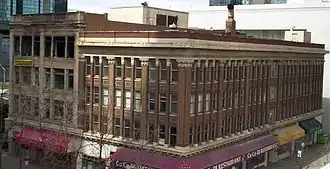 James Ramsey was a department store owner who opened up a store in the Tegler Building (to the north of the Kelly Ramsey Building). Shortly after moving to Edmonton in 1911, he required more space and moved into the building which was built by a blacksmith John Kelly. Not long after Kelly's death Ramsey bought the building from his widow in 1926 for $100,000. He then extended the story westward calling it the Ramsey Building. In the 1940s the Government of Alberta bought the building.[1] More recently, it had been owned by Worthington Properties.
