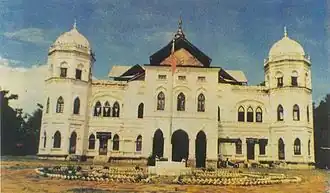 Kengtung was historically located at the crossroads of the trade between China and Siam and 19th century sources talk about caravans crossing Kengtung on their way to Chiang Mai totaling yearly 8,000 mules loaded with goods from China.[2] During British rule in Burma the eastern border was demarcated by the colonial powers and the western part of Kengcheng was merged with Kengtung.[9] Historically Kengtung also included the substates of Hsenyawt, Hsenmawng, Monghsat and Mongpu.[8][10] Between 1849 and 1854, Siam invaded Kengtung thrice; the invasions were repulsed with Burmese and Shan military assistance.[11]