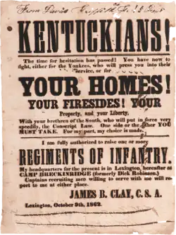 An estimated 25–40,000 Kentuckians served as Confederate soldiers, while 74–125,000 Kentuckians served as Union soldiers, including 24–25,000 Black Kentuckians, free and enslaved.[3][4][5][6]