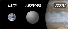 Kepler-9d with Earth and Jupiter compared to size. | |