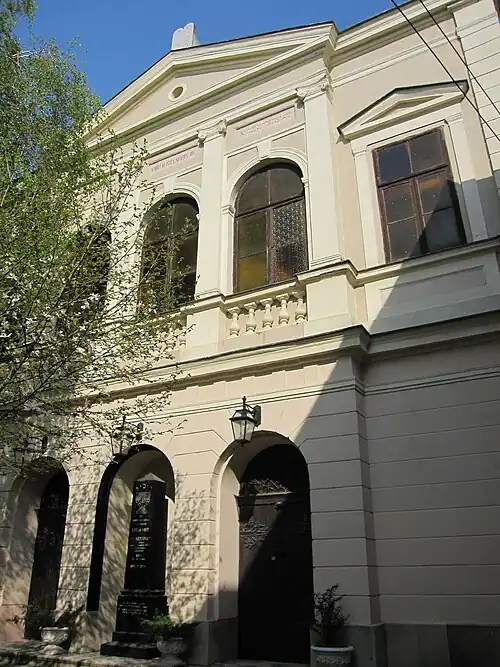 The first Jews settled in what is now the town of Keszthely in the early 18th century. According to the town census, there were seven Jewish families by 1745.[4] A functioning Jewish community was established in Keszthely in 1766. A map of 1769 depicts an oblong house of Jews on the main street with a chapel in the yard. The community erected a synagogue on this site designed by architect Christopher Hofstadter. In 1812, the Jewish community purchased the building from the domain and in 1852 built the current building in its place.