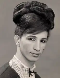 The salon became a place where the queer community could safely meet and perform drag shows, or "Moffie concerts."[3] Kewpie performed under the name Capucine.[3] Kewpie saw her gender identity as fluid, though most often used feminine pronouns.[1] The family of her partner, Brian Armino, considered Kewpie to be a woman and treated her as such.[2]