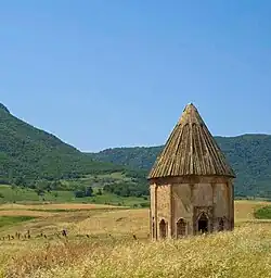 Khachin-Darbatli Mausoleum (Azerbaijani: Xaçındərbətli türbəsi) or Khachen-Dorbatli Mausoleum (Armenian: Խաչեն-Դորբատլիի դամբարանի) is a tomb-mausoleum of Qutlu Khwâdjah (ibn Musâ) located close to the Khachindorbatli village of the Aghdam District of Azerbaijan. It was built by the medieval Armenian architect Vardapet Shahik in 1314.[1][2] The mausoleum is located 23 km to the north of Aghdam and is on the list of heritage sites of the Republic of Azerbaijan as a 14th-century memorial monument of Karabakh.[3]