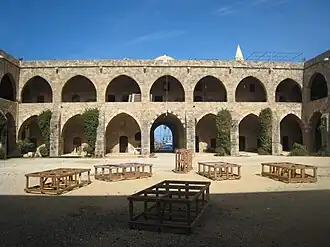 Khan al-Franj (Arabic: خان الفرنج) is an Ottoman caravanserai in Sidon, Lebanon. The founding of the structure is traditionally attributed to the Druze emir Fakhr al-Din II, but its construction was ordered earlier, in the late 15th century by Grand Vizier Sokullu Mehmed Pasha. Its name is owed to the French (called al-Franj in Arabic) merchants it housed in the 17th century. It currently functions as a cultural center and is owned by the French government, which has leased it to the Hariri Foundation.