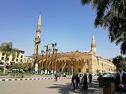 The district underwent significant modifications and re-developments again in the 19th and 20th centuries alongside major developments in the urban fabric of modern Cairo to the west. Al-Muski Street, a popular market street today, was created by cutting across the fabric of the old city to create a street roughly perpendicular to al-Muizz Street (the old Qasaba avenue). It runs from al-Hussein Square in the east to Midan 'Ataba ('Ataba Square) in modern downtown Cairo to the west.[9] Among other important re-developments was the construction of about two dozen new residential blocs with ground-level shops in the eastern sector of the souq, initiated by the princess Shawikar in the late 1930s. This eastern area is now one of the most frequented by tourists.[8][5]: 225