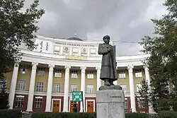 With the end of socialist rule in 1990, however, re-examining of Choibalsan's rule has occurred. Nevertheless, Choibalsan is not the object of strong resentment in Mongolia. While Stalin's statue, for example, was removed from the front of the National Library in 1990, shortly after the Democratic revolution, Choibalsan's statue, still stands in front of the National University in Ulaanbaatar, an institution he helped found and that for a time bore his name. Moreover, the capital of Dornod aimag continues to carry his name.