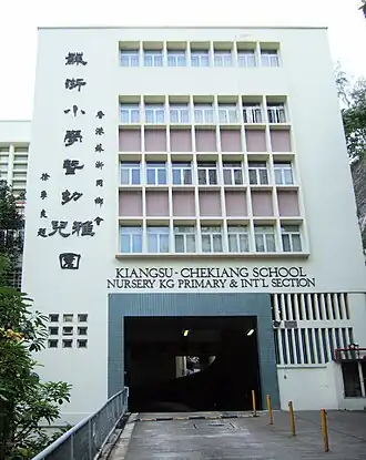 Kiangsu and Chekiang Primary School (also called as KCPS) is a co-educational primary school in North Point, Hong Kong[1] founded in 1953 by the Kiangsu and Chekiang Residents' Association of Hong Kong.[2] It was the first school in Hong Kong to teach primarily in Mandarin Chinese, and for many years continued to be the only school to do so.[2][3]