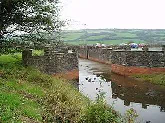 The wooden Pontnewydd aqueduct, which was prone to the river flowing over its top, was replaced by an iron one built on a slightly higher level to provide more room for the river to flow under it.[10] Pinkerton's two locks were rebuilt, and the banks of the Kymer canal were raised by 2 feet (0.6 m), to allow the water level to be raised. This had also required the Kidwelly basin walls to be raised.[11] At the southern end, access to Burry Port harbour required a deep cutting to be constructed, and this was completed by March 1835.