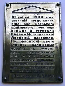 - ^ Russian: Киевское высшее военно-морское политическое училище, romanized: Kiyevskoye vyssheye voyenno-morskoye politicheskoye uchilishche; Ukrainian: Київське вище військово-морське політичне училище, romanized: Kyivske vyshche viiskovo-morske politychne uchylyshche