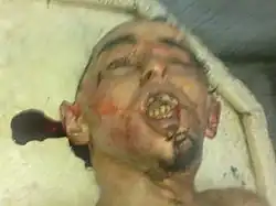 When Saaed's family visited his body in the morgue, his brother snapped pictures of the corpse using his mobile phone.[17] The photo of Saeed's corpse was released onto the internet by Saeed's family in June 2010, causing a large outcry.[18] Human Rights Watch released a press report about the photo that stated, "Photos of Said's battered and deformed face published on the internet show a fractured skull, dislocated jaw, broken nose, and numerous other signs of trauma" and that the image clearly showed "strong evidence that plainclothes security officers beat him in a vicious and public manner".[12]