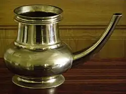 Kindi is a type of a pitcher usually found in old houses in Kerala and other parts of India. The word Kindi is derived from the word kuṇḍikā, kuṇḍa, kuṇḍī, kuṇḍaka meaning "water pot" or "water sprinkler".[1]