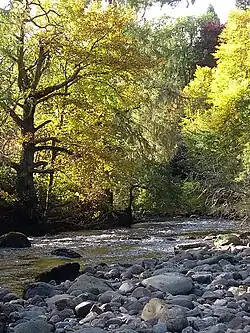 The extensive Kindrogan Woods, mostly coniferous, cover the lower slopes of the hill and the River Ardle forms a boundary to the east of the house. An old curling pond lies beside the driveway to the West Lodge.
