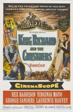King Richard and the Crusaders is a 1954 American historical drama based on Sir Walter Scott's The Talisman[3] made by Warner Bros. The film stars Rex Harrison, Virginia Mayo, George Sanders and Laurence Harvey, with Robert Douglas, Michael Pate and Paula Raymond. It was directed by David Butler and produced by Henry Blanke from a screenplay by John Twist based on Sir Walter Scott's 1825 novel The Talisman. The music score was by Max Steiner and the cinematography by J. Peverell Marley. This was Warner Bros.' first essay into CinemaScope. King Richard and the Crusaders was listed in the 1978 book The Fifty Worst Films of All Time.