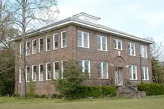 The King Schoolhouse is a historic school building in the small town of King, Arkansas. Located near the center of King, about 1 mile (1.6 km) east of United States Route 71, it is a two-story brick building with a hip roof and a hip-roof dormer. Its main entry is centered on the southern facade, slightly recessed under an arch, with sidelight and transom windows. The Colonial Revival building was built in 1915, when King was a bustling lumber and railroad community, and served it as a school, church, and community center, and is the only known Colonial Revival school building in Sevier County. It continues to be used as a community center.[2]