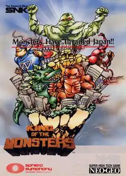 King of the Monsters[a] is a fighting game developed by SNK, released for arcades in Japan in 1991, and ported to the Neo Geo AES later that same year.[3] The game features playable giant monsters that are reminiscent of characters from kaiju and tokusatsu films.