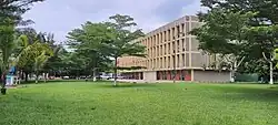Kisangani has architecturally significant buildings in a wide range of styles still in their original form. These include the Aumonerie which is distinctive for its facade using visible stone-tone to evoke the building's structure, the impressive 20th century headquarters landmark that is Central Prisons' with its towering fortress walls,[56][57][58]Cathédrale Notre-Dame du Rosaire, an early cathedral revival built with massively scaled stone detailing,[59] and the Congo Palace Hotel on avenue de l'eglise is an important example of highly influential European style buildings in Kisangani.[60][61][62][63]