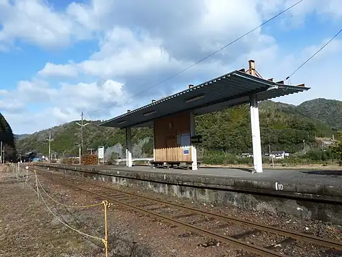 Japanese National Railways (JNR) opened the station on 1 November 1960 as an intermediate station during the construction of the then Gannichi Line (岩日線, Gannichi-sen) from Kawanishi to Kawayama. With the privatization of JNR on 1 April 1987, control of the station passed to JR West which then ceded control to Nishikigawa Railway on 25 July 1987.[2][3]