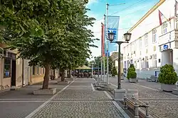 The public market was open in 1586, when the Ottomans moved the seat of nahiyah to Fetislam tower. In the mid-19th century, it was recorded that the market is open on Saturdays. In the mid-20th century, the market was equipped with the concrete market stalls, receiving little maintenance[18] until 2019, when more extensive renovation works begun.[19]