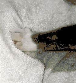 Kneading (often referred to as making biscuits[1]) is a behavior frequently observed in domestic cats where, when a cat feels at ease, it may push out and pull in its front paws against a surface such as furniture or carpet, or against another pet or human, often alternating between right and left limbs. Each stroke is accompanied by a grasping motion of the claws as if the cat were kneading dough.