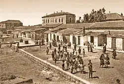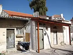 The cornerstone for the first development, Knesset Aleph, was laid in September 1892, with construction extending over the next 10 years.[10] By 1897, only 15 apartments were completed and occupied.[11] The complex was completed in 1902 with 31 apartments built in one-story row houses on three sides of a rectangular courtyard; the eastern side was left open.[10] The buildings were placed close together to maximize available land.[10] Each apartment consisted of two rooms and a kitchen.[12][13] Construction funds were provided by donations from Jews in America and Australia,[2][7] and donors' names were inscribed on marble plaques over the doorways of the apartments.[2]