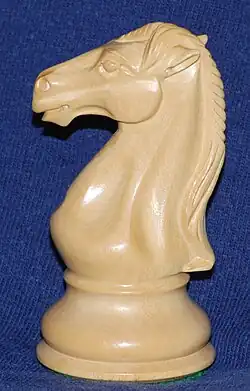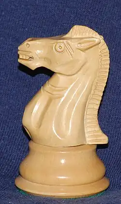 The knight has the oldest defined movement of any chess piece.[c] It was first introduced in the Indian game of chaturanga around the 6th century; it has not changed since.[12]