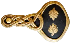 The uniforms of the Knights of St. John International are notable for their consistency since the establishment of the order. Uniforms consist of double-breasted frock coats and trousers made of black cloth with two rows of buttons (the quantity and color of which is dependent upon the Knight's rank). Shoulder knots (for Sir Knights, corporals and sergeants) or rank-bearing shoulder boards (for officers), sword belts, and swords accompany the uniform. An ostrich-plumed chapeau (white for Sir Knights, black for officers) completes the traditional uniform. Swords, buttons, belts, and other trim for officers are brass or gold-colored, while for Sir Knights these uniform pieces are silver-colored.[4]