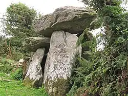 The Knockeen Portal Tomb is a megalith in Knockeen, County Waterford, Ireland. It is the largest dolmen (portal tomb) in County Waterford exhibiting a double capstone configuration, though it is not the tallest standing stone structure. It is one of the finest examples of a dolmen in Ireland.[2]