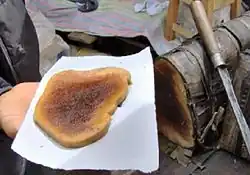 ![]() Thick, dark brown rolls of koba peanut pâté wrapped in banana leaves sold by street vendors in Antananarivo, Madagascar | |
