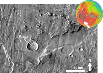 - ^ "THEMIS Image of the Day: Koga Crater (Released 18 August 2003)". themis.asu.edu. Retrieved October 23, 2007.