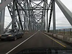 The bridge across the Amur River (in Komsomolsk-on-Amur) is a road-rail bridge across the Amur River near the city of Komsomolsk-on-Amur. The bridge has a single-rail track and two-lane highway that allows to completely divide cars and other vehicles from trains. The bridge carries also a single-circuit 220 kV-powerline.