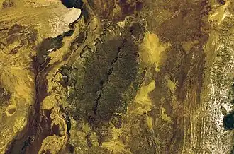 The Korath Range is a mountain range in the Southern Nations, Nationalities, and Peoples' Region of southern Ethiopia. It consists of an isolated cluster of about 20 tuff cones, many of which produced 5 km (3.1 mi) long lava flows that are dominantly basanitic and tephritic in composition. The youngest lava flow, which issued from a cone in the middle of the range, has been radiocarbon dated at 7900 BP, although a more recent radiocarbon date of between 30,000 BP and 7900-9500 BP has also been obtained.[1]