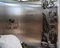 A central walk-way leads to a semi-enclosed contemplative space. A boulder from a Korean battlefield is a focal commemorative point with the words "Peace and Independence" inscribed in Korean. Inside are images, maps and text etched into stainless steel panels telling the story of the Australians who served in the Korean War, on the left telling the general story and on the right telling of particular involvement of the Navy (nine ships and an air group), Army (3 RAR, and elements of 1 & 2 RAR), and Air Force (77 Squadron and other elements).
