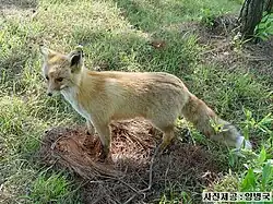 In 1976 a male red fox was captured in the Korean Demilitarized Zone (DMZ) and in 1987 another individual was found in the Jirisian national park.[4] In 2004 the carcass of a red fox was found in Gangwon-do. This finding indicates that these is a possibility that the Korean red fox still lives in the wild forests of Gangwon-do.[4] Reintroduction program with captive animals from the Seoul Zoo has been run at Sobaeksan National Park to reestablish the local population of 50 by 2020.[5]