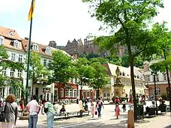 The Kornmarkt ("Corn market") is a square in the Altstadt of Heidelberg, near the Marktplatz. The north edge of the Kornmarkt is marked by the Hauptstrasse, the south by Ingrimstrasse and Karlstrasse. The Burgweg, which leads up to Heidelberg Castle, begins to the south of the Kornmarkt.